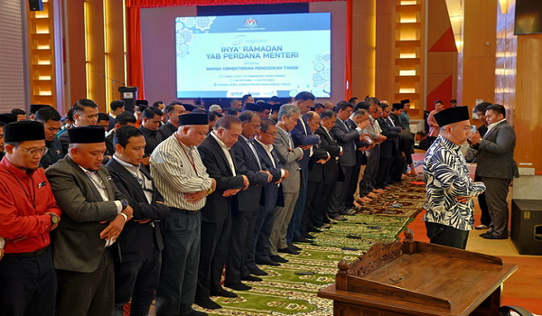 Kira-kira 300 warga KPT mendengar tazkirah Ramadan disampaikan Dekan Fakulti Pengajian Islam, Universiti Kebangsaan Malaysia (UKM) Profesor Madya Datuk Dr Mohd Izhar Ariff Mohd Kashim bertajuk “Maqasid Al-Quran dan Masyarakat MADANI” sebelum menunaikan solat zuhur berjemaah yang diimamkan oleh Mohd Izhar Ariff.