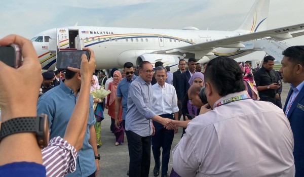 Pesawat membawa Perdana Menteri yang diiringi isterinya, Datuk Seri Dr Wan Azizah Wan Ismail mendarat di Kompleks Bunga Raya, Lapangan Terbang Antarabangsa Kuala Lumpur (KLIA) kira-kira pukul 5.00 petang tadi.