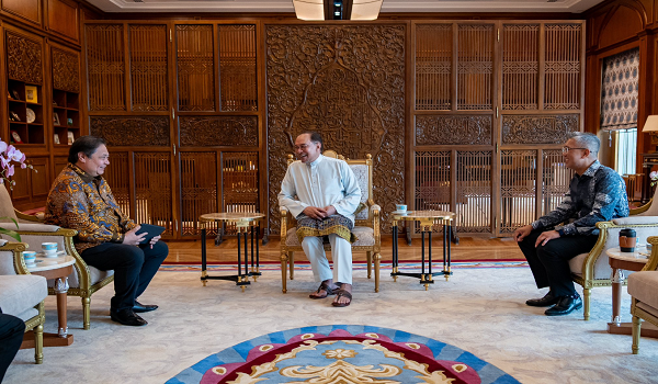 KUALA LUMPUR, 4 April – Perdana Menteri Datuk Seri Anwar Ibrahim hari ini menerima kunjungan Menteri Penyelaras Hal Ehwal Ekonomi Indonesia Airlangga Hartarto di pejabat beliau di Putrajaya.