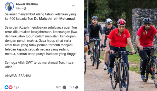 “Saya dan Azizah mendoakan setulusnya agar Tun terus dikurniakan kesejahteraan. Gaya hidup sihat serta amal bakti yang tidak pernah terhenti menjadi teladan kepada sebuah negara yang sedang menua, namun tetap punya harapan yang tinggi.