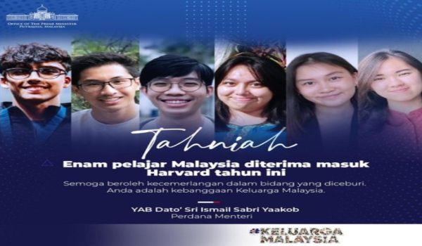 KUALA LUMPUR, 6 April – Perdana Menteri, Datuk Seri Ismail Sabri Yaakob menyatakan rasa bangga ke atas kejayaan enam pelajar Malaysia melanjutkan pengajian ke Harvard College, Amerika Syarikat.