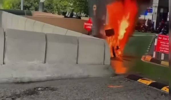 Sebelum ini, tular sebuah video yang dimuat naik oleh seorang pengguna Facebook iaitu Muhamad Fuad yang memaparkan motosikal yang ditunggangi bersama isteri musnah dijilat api.