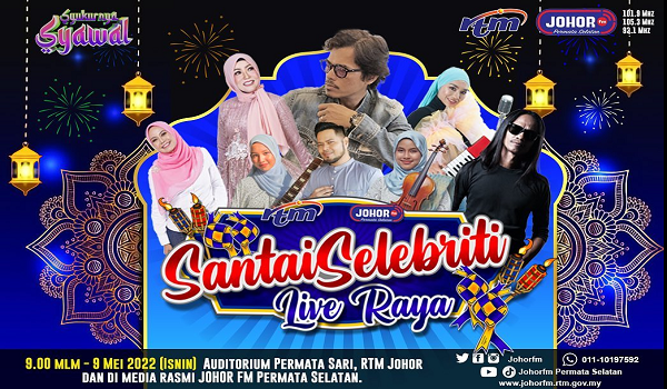 JOHOR BAHRU, 10 Mei – Kemeriahan Aidilfitri terus dirasai di Jabatan Penyiaran Malaysia negeri Johor, menerusi program Santai Selebriti Raya JOHORfm di Auditorium Permata Sari.