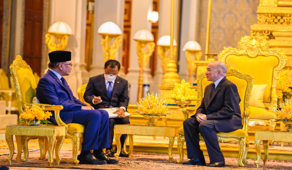 KUALA LUMPUR, 28 Mac – Raja Kemboja, Raja Norodom Sihamoni berkenan menerima menghadap Perdana Menteri, Datuk Seri Anwar Ibrahim di Istana Diraja Kemboja sempena lawatan rasmi sulungnya ke negara itu.