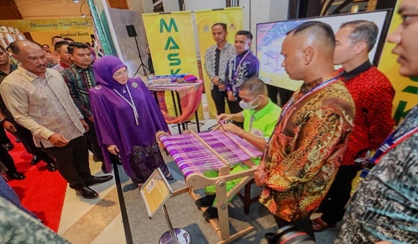 Sejurus tiba, Tunku Azizah berkenan melawat pameran fabrik, produk kraf dan produk air tangan Tengku Ampuan Pahang.