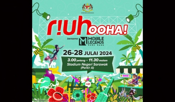 KUCHING, 25 Julai – Kembara RIUH OOHA! bersama Mobile Legends: Bang Bang, edisi ke-6 akan berlangsung di tempat letak kereta, Stadium Negeri, Petra Jaya di sini pada Jumaat hingga Ahad ini.