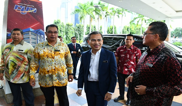 (Menteri Komunikasi dan Digital, Ahmad Fahmi Fadzil disambut oleh Ketua Setiausaha, Datuk Seri Mohammad Mentek dan
