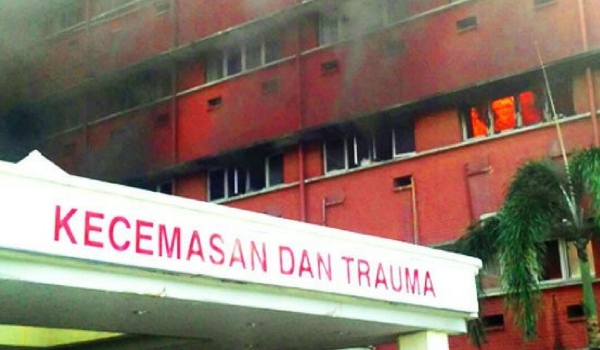 (Wad kecemasan Hospital Sultanah Aminah Johor Bahru dilaporkan terbakar pada 25 Oktober 2016)