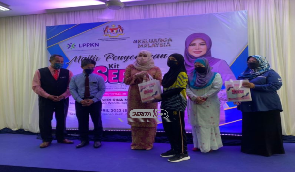 (Datuk Seri Rina Mohd Harun menyampaikan Kit SERI kepada 34 remaja