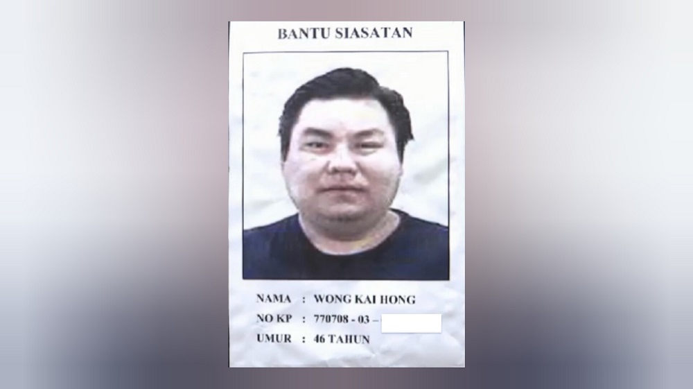 (Wong Kai Hong dicari polis untuk bantu siasatan)