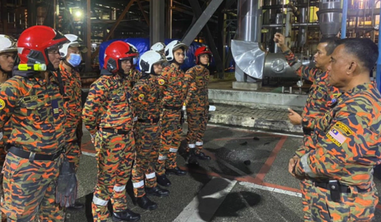 Pasukan Hazmat kemudian melaksanakan teknik ‘water suppression’ bagi menurunkan bacaan gas bertoksik di kawasan operasi.