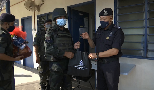 Dalam kunjungan itu beliau menyampaikan sumbangan hari raya berupa kuih muih kepada anggota bertugas dari Batalion 2 PGA Kulim, Kedah.
