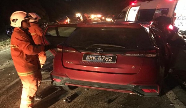 “Setibanya di lokasi kejadian, kami mendapati berlakunya kemalangan jalan raya melibatkan sebuah pacuan empat roda jenis Mitsubishi Triton bertembung dengan Toyota Yaris dan terdapat seorang lelaki dewasa iaitu pemandu SUV tersepit dalam kenderaan terbabit.