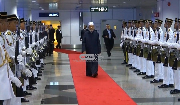 Sheikh Al-Azhar tiba di balai pelepasan Lapangan Terbang Antarabangsa Kuala Lumpur (KLIA) pada 8.35 pagi.
