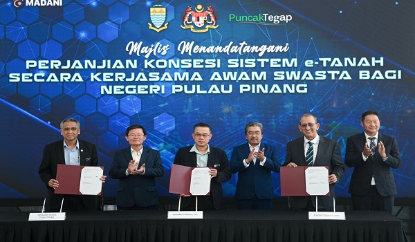 “E-Tanah boleh memproses dengan cepat, menyelesaikan banyak ‘backlog’ dan memastikan setiap transaksi direkod secara telus,” katanya selepas menyaksikan Majlis Menandatangani Perjanjian Konsesi Pelaksanaan Sistem E-Tanah secara Kerjasama Awam-Swasta bagi Negeri Pulau Pinang di sini.