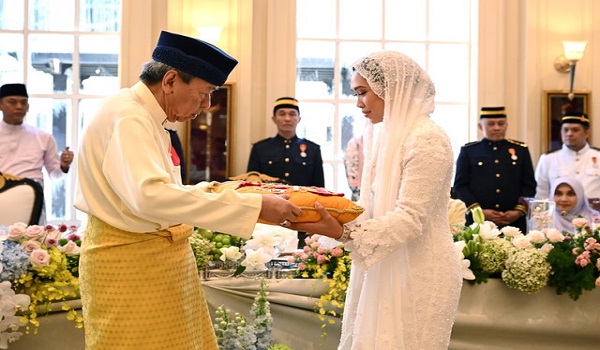 Pengurniaan itu berlangsung sejurus selepas upacara akad nikah di Masjid Istana Diraja, Istana Alam Shah, pagi tadi.