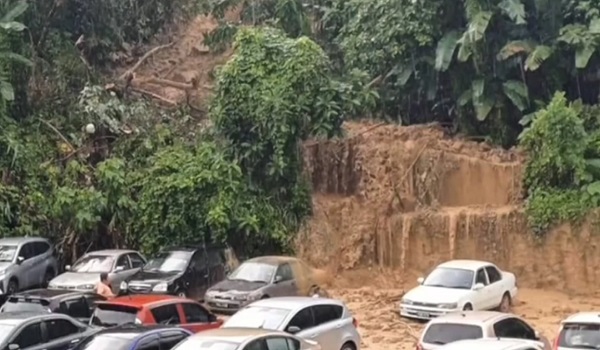 PAYA TERUBONG, 24 Oktober- Kejadian tanah runtuh dilaporkan berlaku di kawasan tempat letak kenderaan berhampiran sebuah pasar raya di Paya Terubong, Ayer Itam, Pulau Pinang, petang tadi.