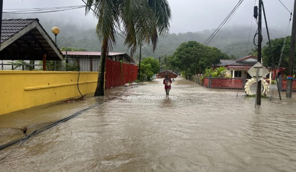 KUALA TERENGGANU, 22 November – Terengganu mula dilanda banjir ekoran hujan lebat yang berlaku sejak malam Jumaat dan ditambah dengan fenomena air pasang besar.