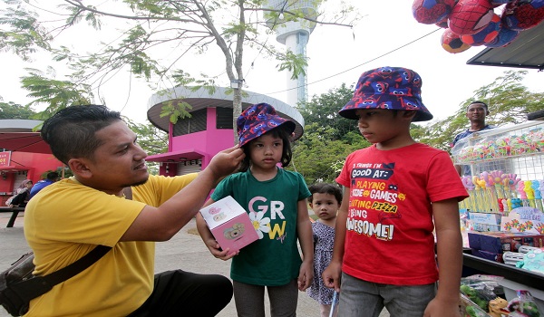 (Bapa Zakwan Moois, 37, membelikan topi untuk dua anaknya semasa