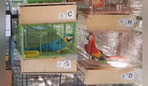 Suspek cuba menyeludup empat ekor Burung Ara, tiga ekor Blue and Gold Macaw, seekor Yellow Headed Amazon dan tiga ekor Scarlet Macaw.