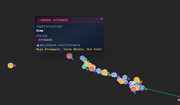 Dua kapal diceroboh iaitu Alma dan Sirius, membawa 7 delegasi Malaysia.