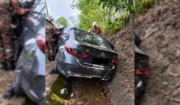 TEMERLOH, 4 Mac- Seorang pemandu dan dua penumpang cedera parah selepas kereta dinaiki mereka terbabas dan masuk ke dalam longkang di Jalan Temerloh-Jerantut dekat Kampung Paya Keladan di sini, petang tadi.