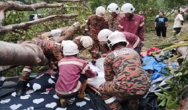 Sebaik tiba, pasukan bomba mendapati pokok tumbang menghempap khemah, mengakibatkan seorang lelaki dan seorang kanak-kanak lelaki cedera, manakala seorang wanita dewasa meninggal dunia.