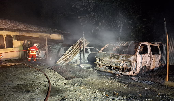 “Kebakaran melibatkan sebuah rumah kekal yang terbakar 80 peratus dan tiga buah kenderaan musnah sepenuhnya. Kejadian dipercayai bermula daripada sebuah kenderaan sebelum merebak ke rumah berhampiran.