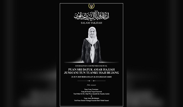 Beliau berkata pemergian Allahyarhamah pada awal pagi tadi merupakan satu kehilangan besar, bukan sahaja buat keluarga tetapi juga seluruh rakyat Sarawak yang mengenali keperibadian beliau yang mulia dan berjiwa rakyat.