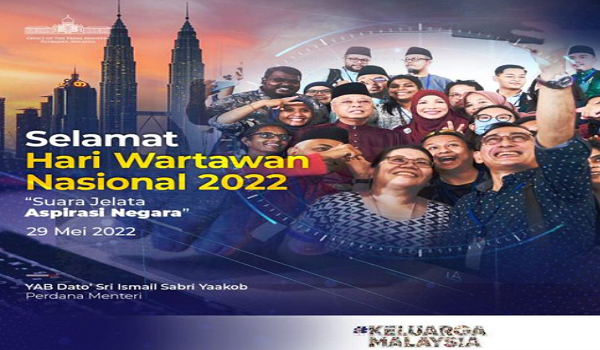 MELAKA, 29 Mei- Perdana Menteri, Datuk Seri Ismail Sabri Yaakob hari ini mengucapkan Selamat Hari Wartawan Nasional (HAWANA) 2022 kepada semua wartawan dan pengamal media di negara ini.