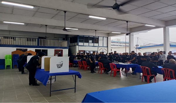 KEMAMAN, 24 November– Pegawai dan anggota polis melaksanakan tanggungjawab mengundi secara pos bagi Pilihan Raya Kecil (PRK) Parlimen Kemaman di Ibu Pejabat Polis Daerah (IPD) Kemaman.