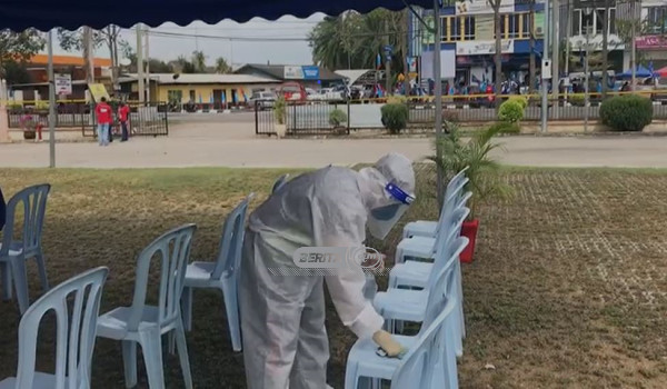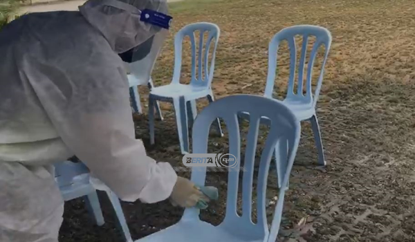 (Proses sanitasi di Pusat Penamaan Calon, Dewan Serbaguna Bukit Gambir)
