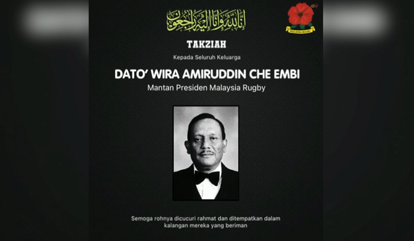 ALOR SETAR, 22 April– Bekas Presiden Ragbi Malaysia, Datuk Wira Amirudin Che Embi meninggal dunia pagi tadi akibat kanser prostat.