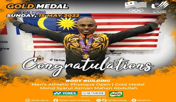 (Atlet bina badan negara, Mohd Syarul Azman Mahen Abdullah memenangi pingat emas Sukan SEA Hanoi)