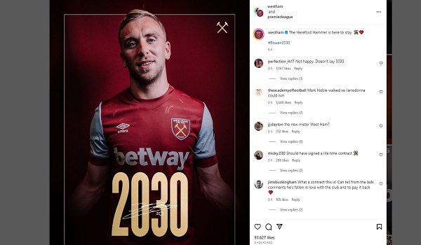 Bos West Ham, David Moyes menyifatkan kontrak itu sebagai berita menakjubkan untuk kelab berkenaan.