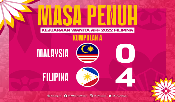 KUALA LUMPUR, 8 Julai – Skuad bola sepak wanita negara tumpas 0-4 kepada Filipina dalam Kejohanan Persekutuan Bolasepak ASEAN (AFF) 2022 bagi aksi ketiga kumpulan A di Manila, malam ini.