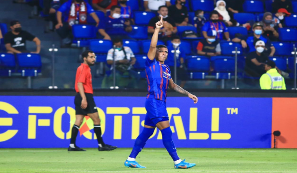 (Ramadhan Saifullah (kiri) meraikan jaringan gol kelima JDT bersama Bergson Da Silva. /Foto: JOHOR Southern Tigers)