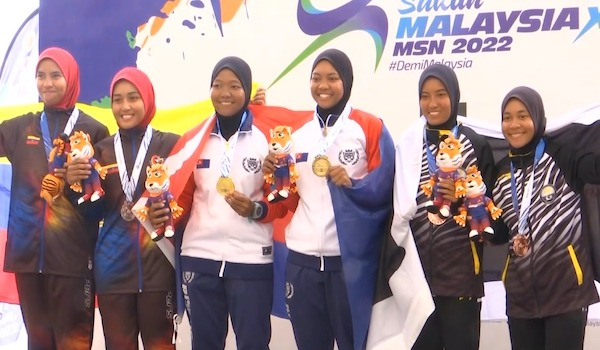 Skuad Kayak Johor menutup tirai saingan hari ini dengan emas kelima menerusi acara K4 1000 meter wanita yang dibarisi Norkiasah Zaenuddin, Nur Atasha Nabila Saring, Nur Syahirah Fuad dan Nurul Najieha Zulkifli.