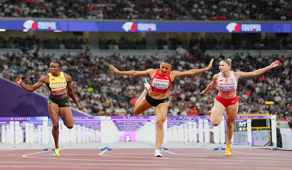 TOKYO, 15 September – Pelari Switzerland, Ditaji Kambundji mencipta kejutan apabila menjuarai acara 100 meter lari berpagar wanita pada Kejohanan Olahraga Dunia dengan catatan rekod kebangsaan 12.24 saat, hari ini.