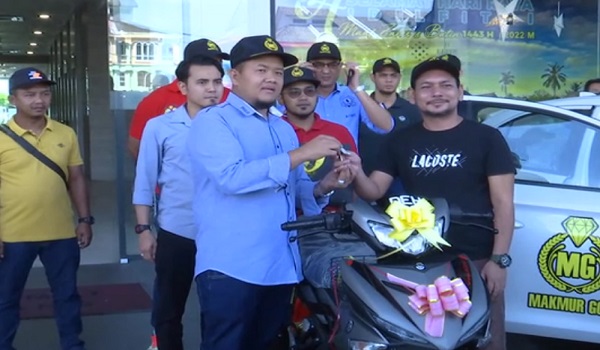 (Mohd Faizuddin Che Mahmood menyempurnakan Majlis Penyampaian Hadiah kepada Pemenang Cabutan Bertuah Pertandingan Makmur Gold International Muay Thai Fight 2022)