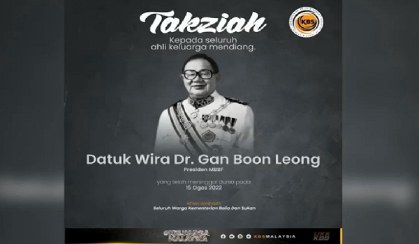 Kementerian Belia dan Sukan (KBS) merakam ucapan takziah kepada keluarga mendiang.