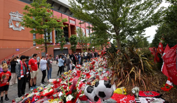 LIVERPOOL, 6 Julai – Peminat berkumpul di luar stadium Anfield di Liverpool pada Ahad hari keempat berturut-turut untuk memberikan penghormatan kepada pemain bola sepak Portugal Diogo Jota dan adiknya Andre Silva yang maut dalam kemalangan kereta pada Khamis.