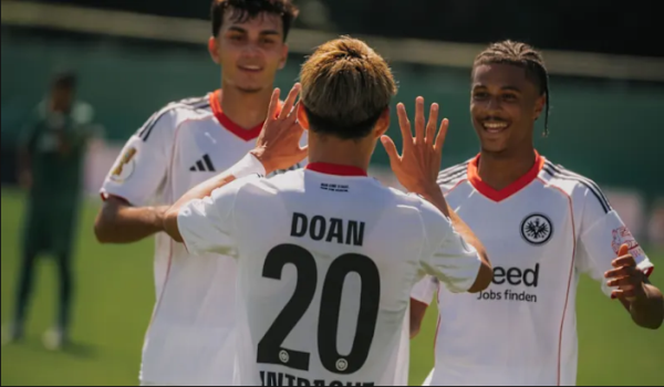 Doan, yang berhijrah dari Freiburg menjaringkan gol kedua Frankfurt pada masa kecederaan babak pertama sebelum menambah satu lagi pada minit ke-54 menerusi rembatan kaki kiri.