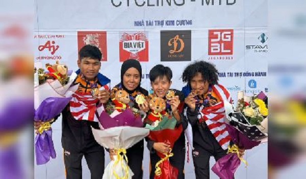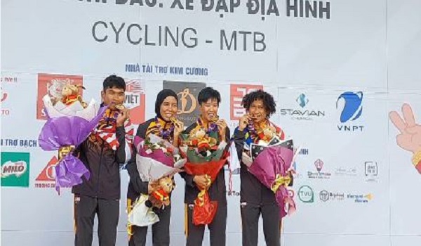 HOA BINH, VIETNAM, 17 MEI-Perkembangan Sukan SEA di Hanoi menyaksikan skuad berbasikal MTB kebangsaan mencipta sejarah apabila merangkul pingat emas pertama acara rentas desa berganti-ganti campuran hari ini.