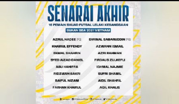(Senarai 16 pemain futsal lelaki yang akan menggalas tugas skuad negara pada temasya Sukan SEA Hanoi)
