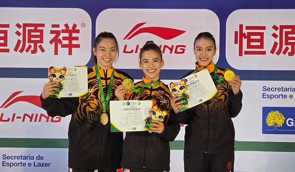 Pingat emas tersebut disumbangkan trio wanita negara yang dibarisi Tan Cheong Min, Lee Jia Rong dan Pang Pui Yee dalam acara Duilian selepas meraih 9.630 mata.
