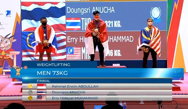 Pada acara angkat berat kategori 73 kilogram (kg) lelaki di Hanoi Sports Training and Competition Center hari ini, Muhammad Erry berjaya melakukan angkatan 143kg bagi snatch dan 173kg bagi clean and jerk untuk mempertahankan pingat gangsa dengan bebanan keseluruhan 316kg.