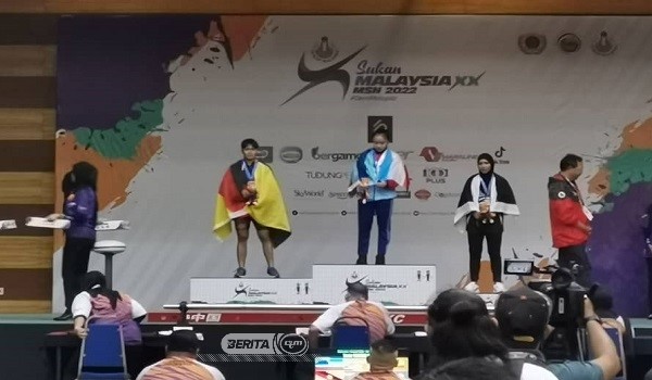 Perak milik atlet Sarawak, Marthini Chan dan gangsa milik atlet Terengganu, Alia Adani Johari.