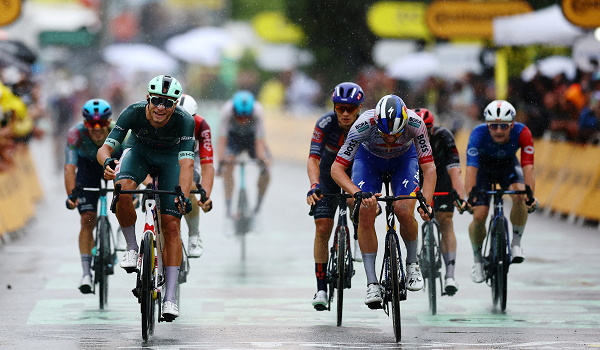 Milan muncul juara dalam pecutan 10 pelumba selepas sebahagian besar peloton terhalang berikutan kemalangan di laluan licin akibat hujan, hanya satu kilometer sebelum garisan penamat di tenggara Perancis.