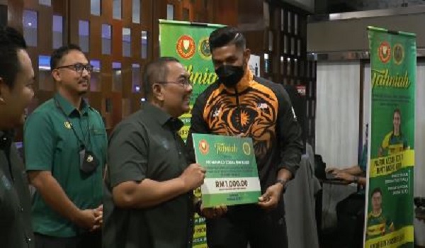 (Datuk Seri Muhammad Sanusi menyampaikan ganjaran kemenangan kepada Atlet Kedah